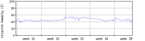 Der blaue Graph zeigt relative Innenfeuchtigkeit. |
