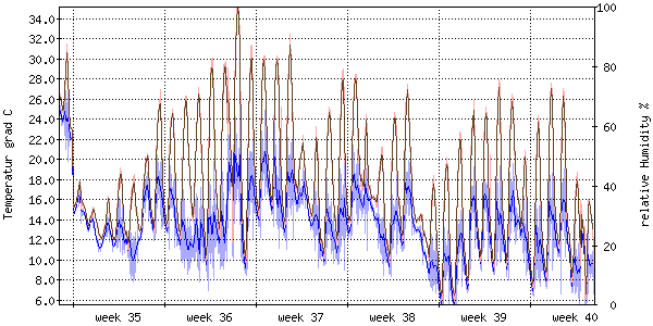 Der blaue Graph zeigt relative Feuchtigkeit. |