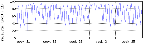Der blaue Graph zeigt relative Feuchtigkeit. |