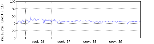 Der blaue Graph zeigt relative Innenfeuchtigkeit. |