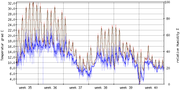 Der blaue Graph zeigt relative Feuchtigkeit. |