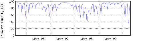 Der blaue Graph zeigt relative Feuchtigkeit. |