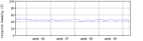 Der blaue Graph zeigt relative Innenfeuchtigkeit. |