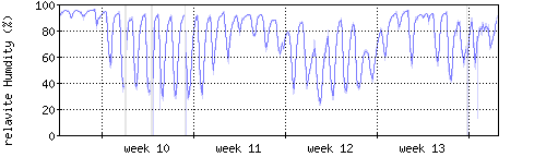Der blaue Graph zeigt relative Feuchtigkeit. |