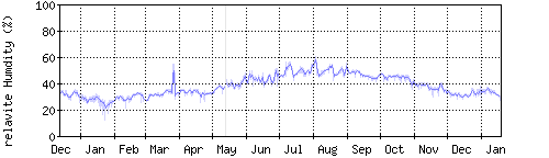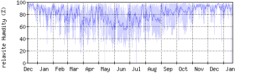 Der blaue Graph zeigt relative Feuchtigkeit. |