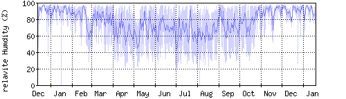 Der blaue Graph zeigt relative Feuchtigkeit. |