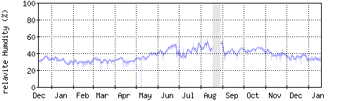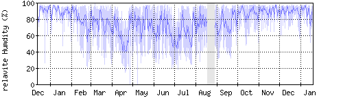 Der blaue Graph zeigt relative Feuchtigkeit. |