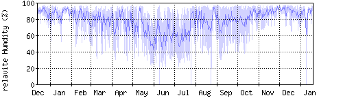 Der blaue Graph zeigt relative Feuchtigkeit. |