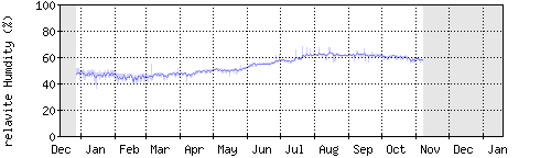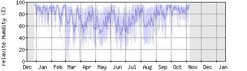 Der blaue Graph zeigt relative Feuchtigkeit. |